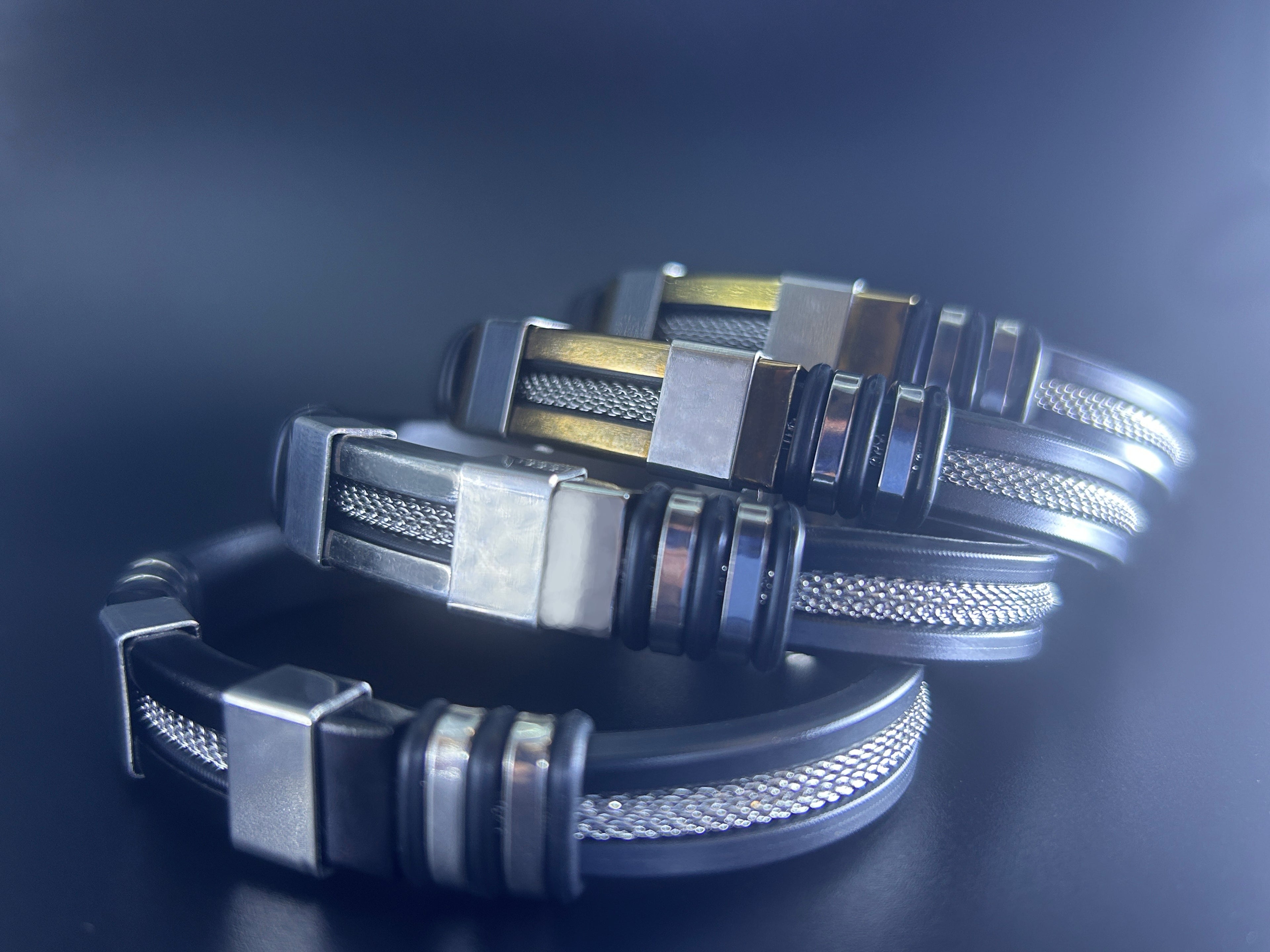 Silicone Chain Stainless Steel Bracelet For Men - Black
