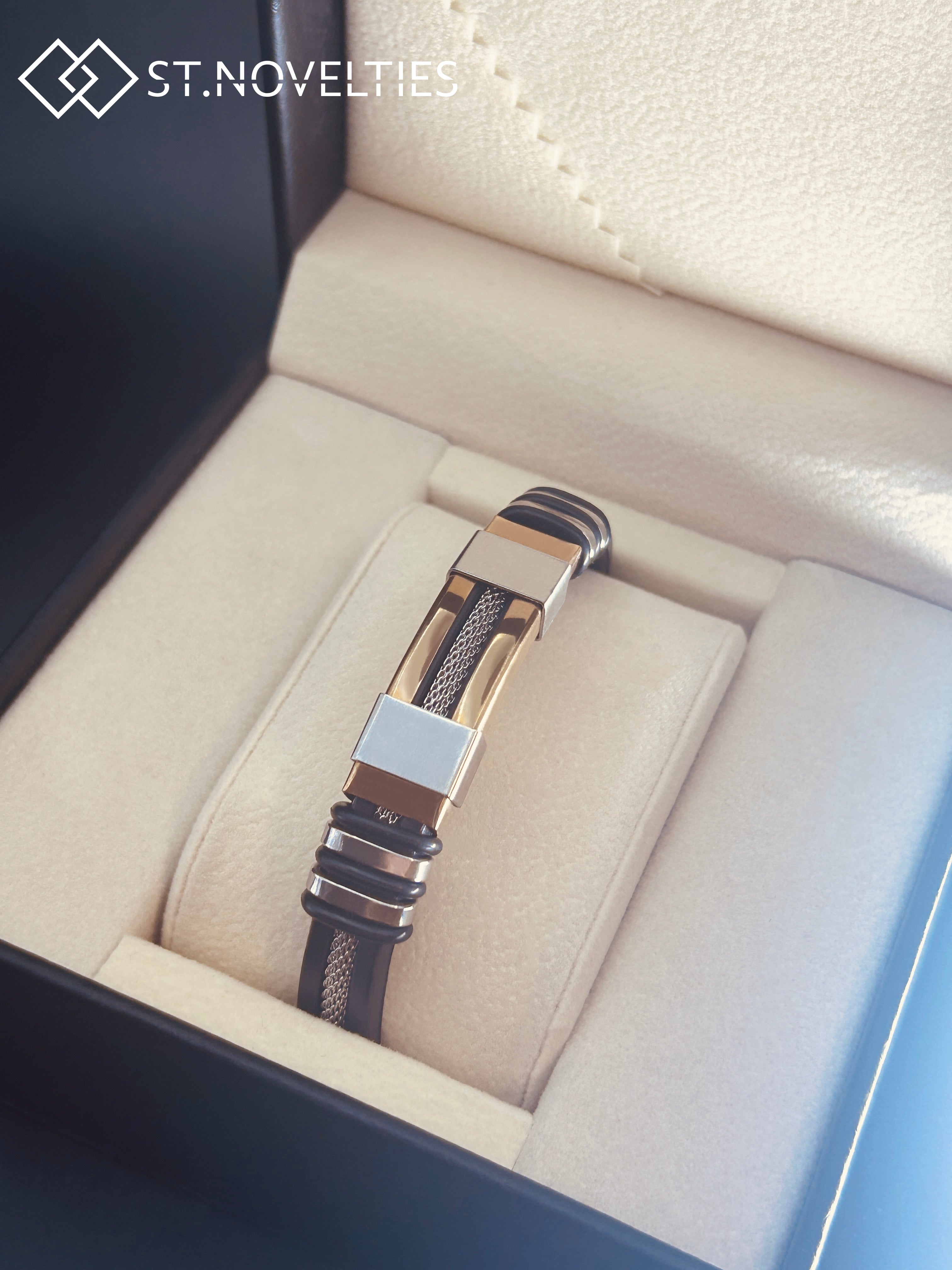 Silicone Chain Stainless Steel Bracelet For Men - Gold